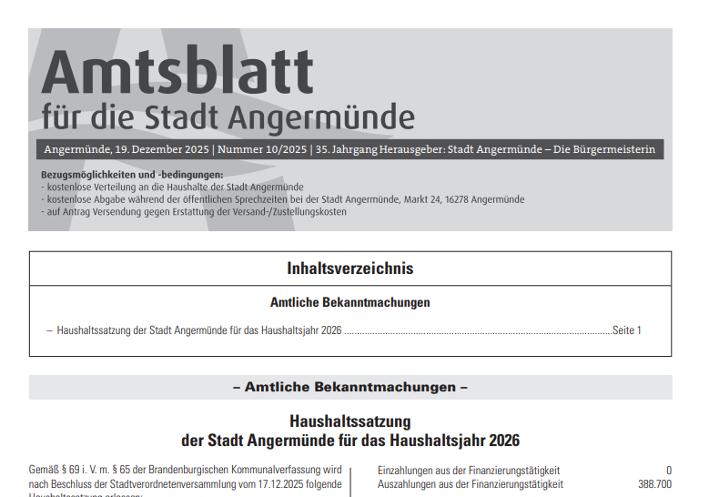 Hiermit senden wir Ihnen den gewohnten Newsletter mit den Verlinkungen auf unsere Webseite, damit Sie die aktuelle Ausgabe des Amtsblattes der Stadt Angermünde lesen können.